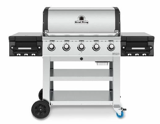The Broil King® Regal™ S 520 Commercial features 625 sq. in. primary cooking surface and includes 5 stainless steel Dual-Tube™ burners, solid