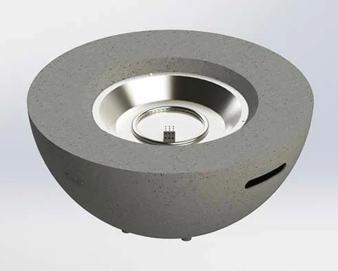 Round table is cast aluminum construction that looks like formed concrete. Premium stainless steel burner with lava rock media. Option to natural gas through a conversion kit. NG Conversion Kit available – sold separately.