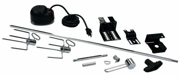 39 ½” universal rotisserie kit includes a motor with on/off switch, heavy duty